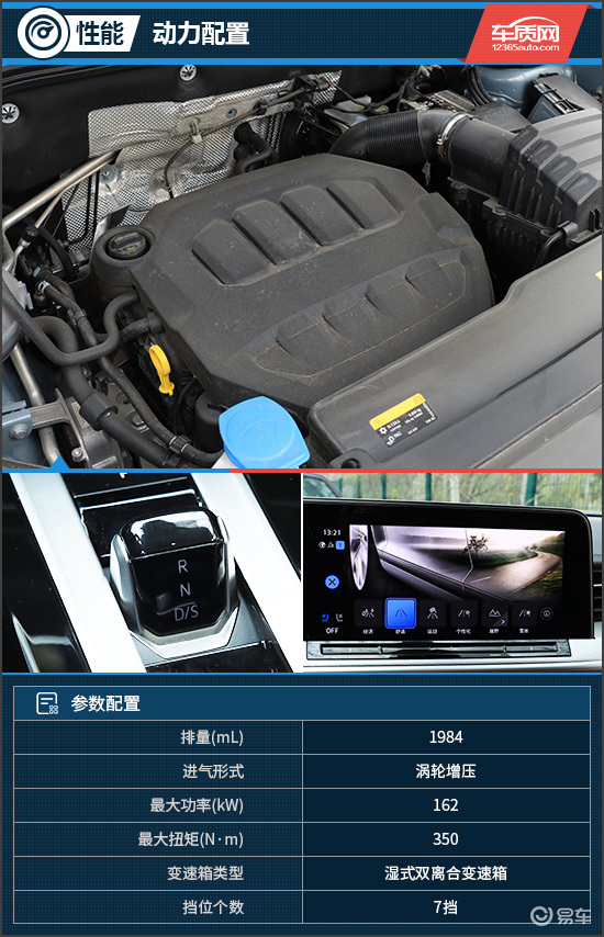 2023款揽巡搭载了大众经典的2.0T第三代EA888发动机+7速湿式双离合变速箱的组合,稳定性还是很让人放心的。2.0T发动机分为高低功率两个版本,此次的评测车为高功率版本,发动机最大功率162kW,最大扭矩为350N·m,账面参数不错。