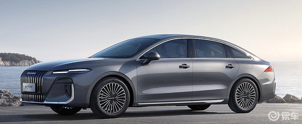 荣威M7 DMH定位中型轿车,长宽高分别为4940/1890/1510mm,轴距为2820mm。近5米的车长使其在同级别车型中具有明显优势,2820mm的轴距也带来了更加宽敞的内部乘坐空间。车身侧面采用传统机械式门把手,提升使用便利性。