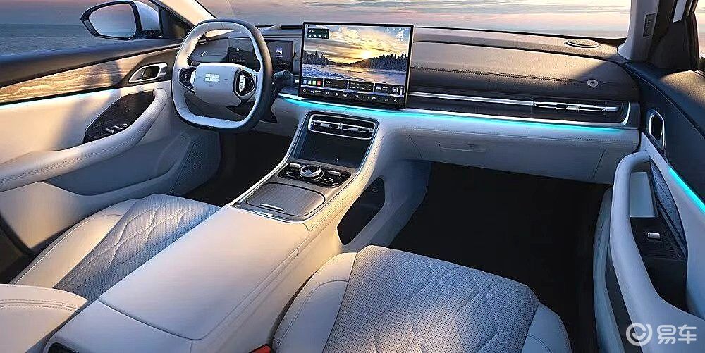 内饰方面,荣威M7 DMH采用极简风格设计,配备15.6英寸2.5K悬浮式中控大屏和10.25英寸全液晶仪表组合,搭配双辐式多功能方向盘和电子怀挡式换挡机构。副仪表台区域提供物理按键、双50瓦手机无线充电面板,兼顾美观与功能性。内饰提供云母灰和玛瑙米两种配色选择。