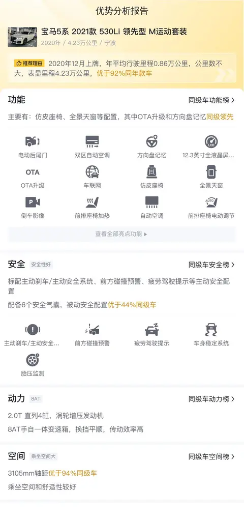 综上所述的新车含税价、用车成本、市场行情、优势分析、同款比价等数据仅供参考。在配置部分,因为二手车非标品,车辆可能会存在配置改装的情况,具体车况信息需要线下结合车辆实际情况进行综合参考。
