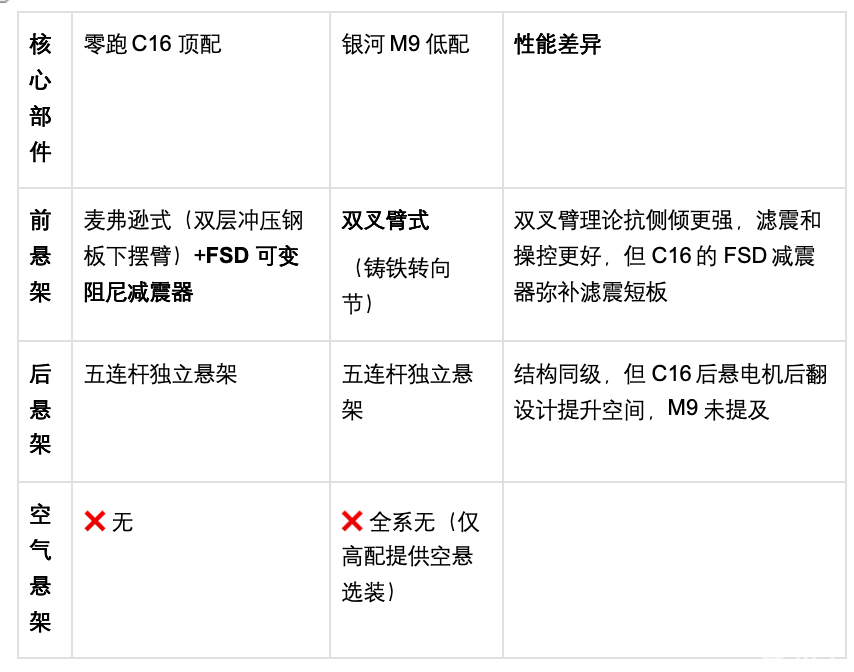 M9低配的双叉臂前悬理论抗侧倾更强,而吉利系的车型底盘调校一直水准也一直在线,C16则通过FSD减震+后驱布局在烂路滤震、高速静谧性上优势明显。但作为家用的大6座SUV来说,两车都可以满足普通家庭对于舒适性的要求。