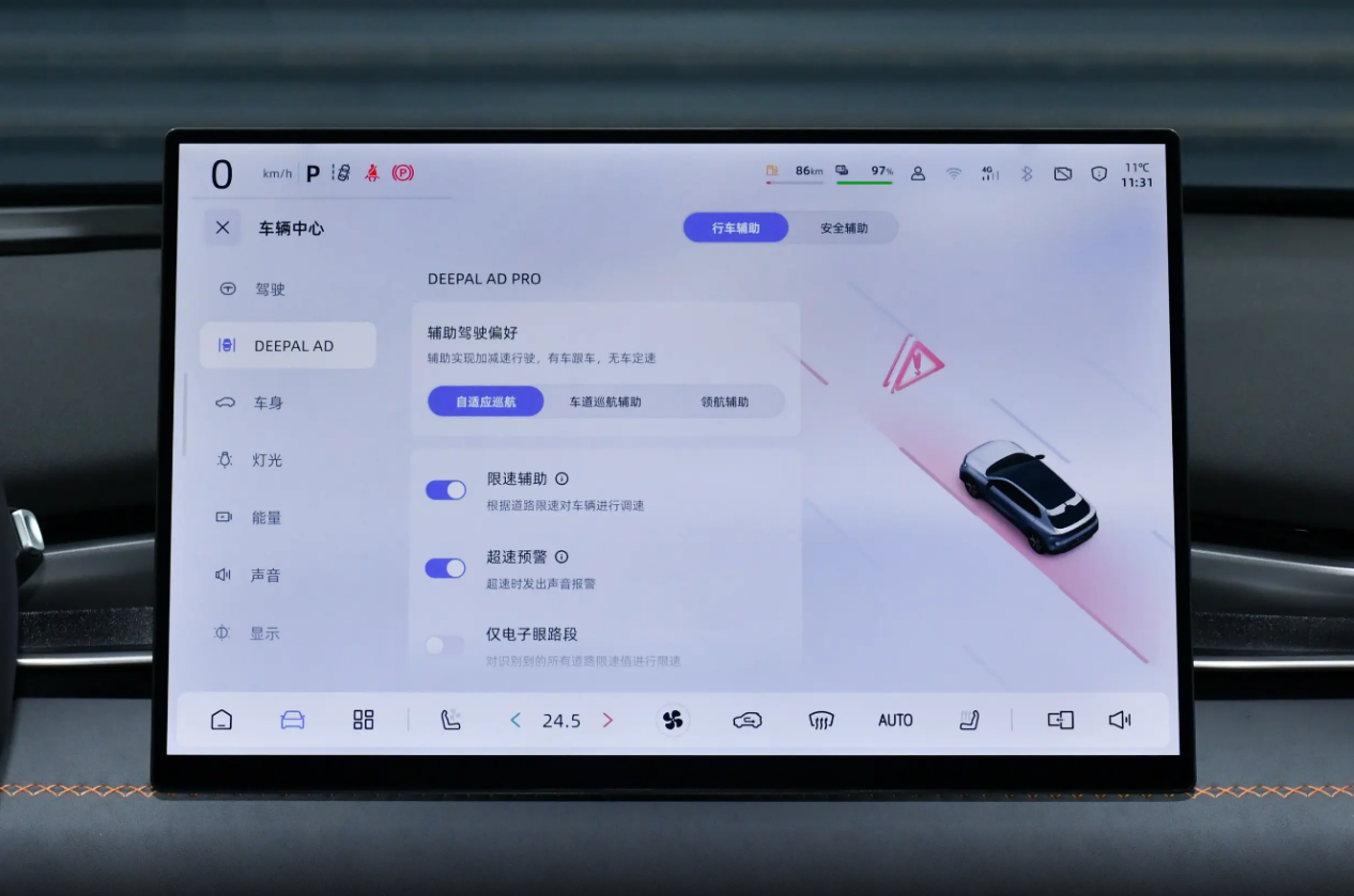 在核心的驾驶辅助能力上,两款车在硬件配置上也有较大差异,这也是其产品定位差异化的关键。零跑C10在硬件上进行了大量堆料,它搭载了1颗128线激光雷达、11个摄像头、12个超声波雷达和3个毫米波雷达,并辅以算力达200TOPS的高通骁龙8650辅助驾驶芯片。这套强大的硬件组合为其实现高速/城市领航辅助功能、自动变道辅助、匝道自动驶出(入)等L2+级功能。相比之下,深蓝S05则采用了相对务实的纯视觉方案,整车搭载了DEEPAL AD PRO系统,配备了1颗800万像素前视摄像头、4颗环视摄像头、5个毫米波雷达和12个超声波雷达,以摄像头为主的感知矩阵让整车同样支持高速领航辅助等主流L2级功能,但在应对极端复杂路况或恶劣天气时,与配备激光雷达的车型理论上有一定差距。