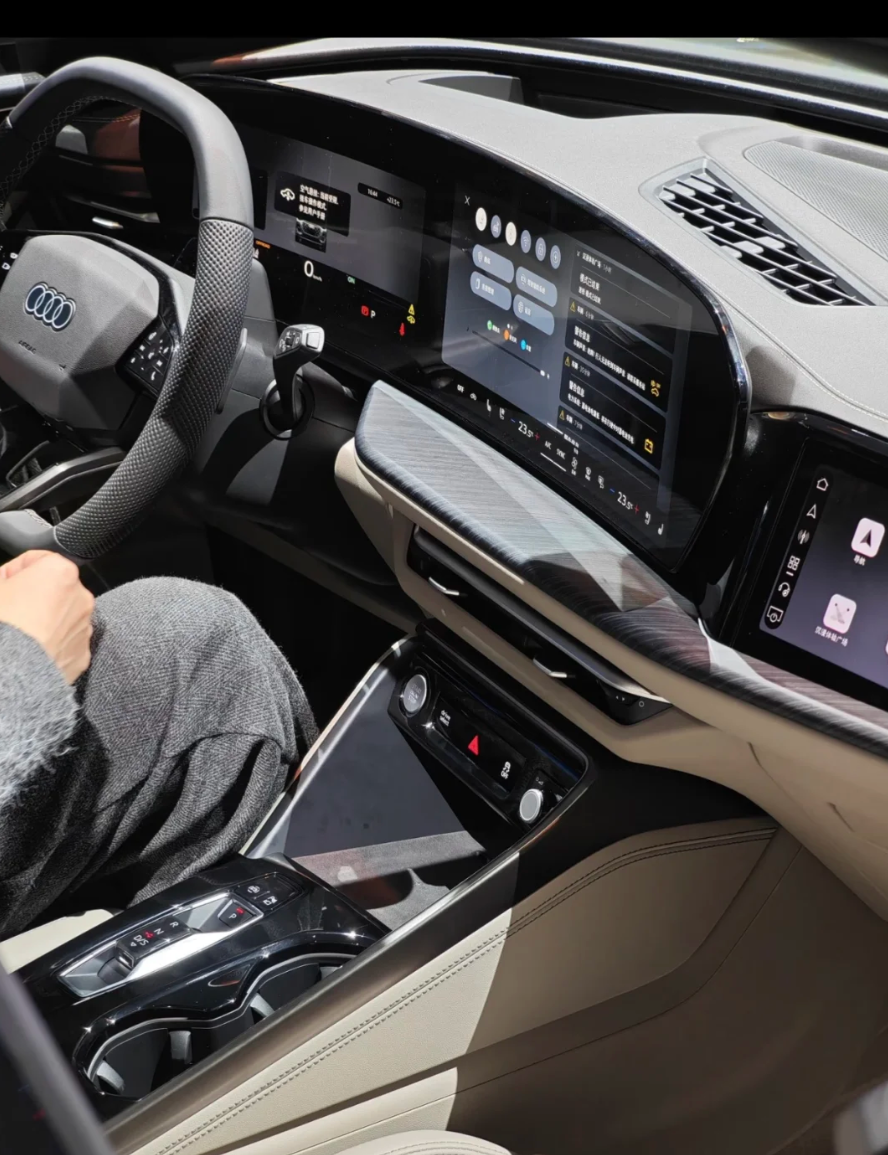 智能化体验的差距,在座舱内体现得尤为明显。全新奥迪Q5L升级了其MMI系统,提供了双音区语音识别、16扬声器音响等配置,其W-HUD抬头显示尺寸为11.3英寸,还升级了11.9英寸仪表盘+14.9英寸中控屏+10.9英寸副驾娱乐屏的三联屏,可视化体验明显改善,也能满足基础的导航与驾驶信息显示需求。