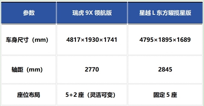 星越L东方曜揽星版虽拥有2845mm轴距,但车身宽度仅1895mm,仅提供5座布局。其后备箱基础容积为562L,装载能力较瑞虎9X有一定明显。例如,在满员出行场景下,瑞虎9X可轻松容纳7人行李,而星越L需牺牲乘坐空间或减少行李数量。此外,星越L的储物空间设计较为常规,缺乏像瑞虎9X那样针对家庭用户需求的精细化考量。